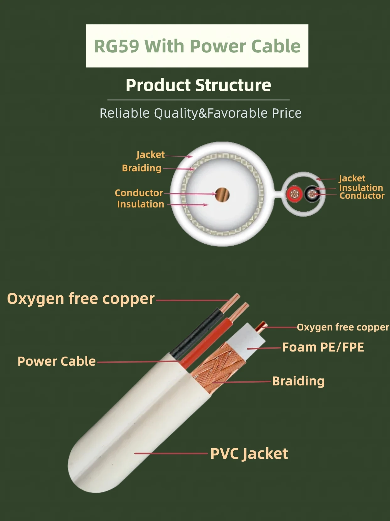 RG59 with power cable's MOQ is 150 rolls for 100m/roll. if you have different and special demands. please feel free to contact with our sales. they will provide the best solutions for you.