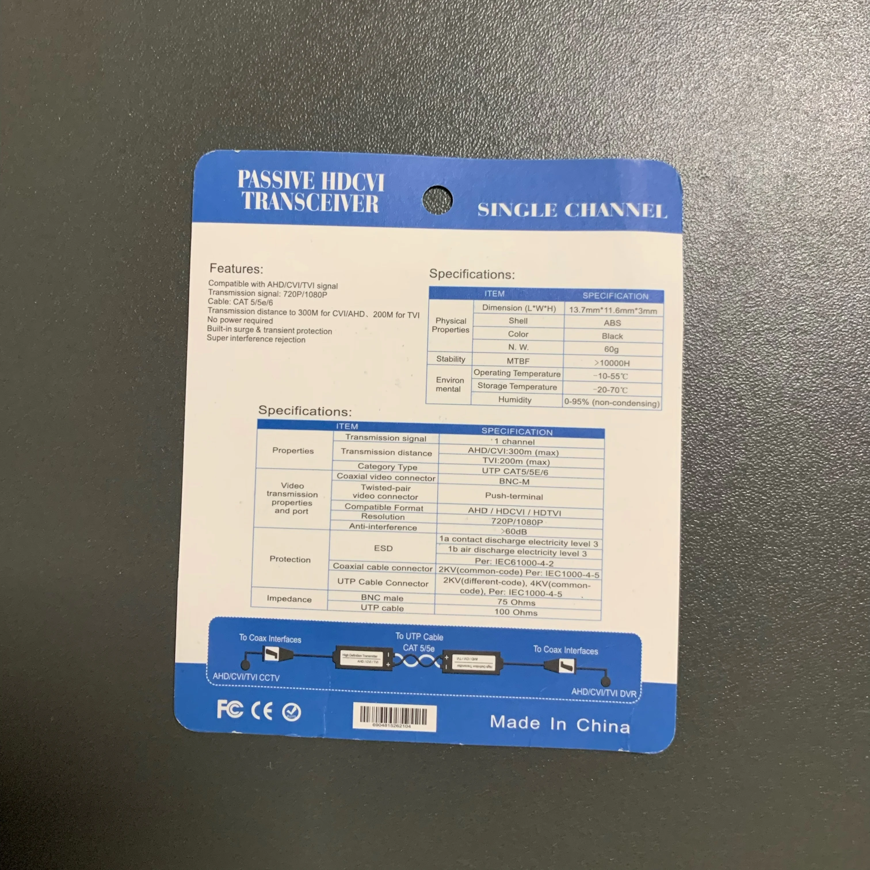 1 Channel Passive Video Transceiver