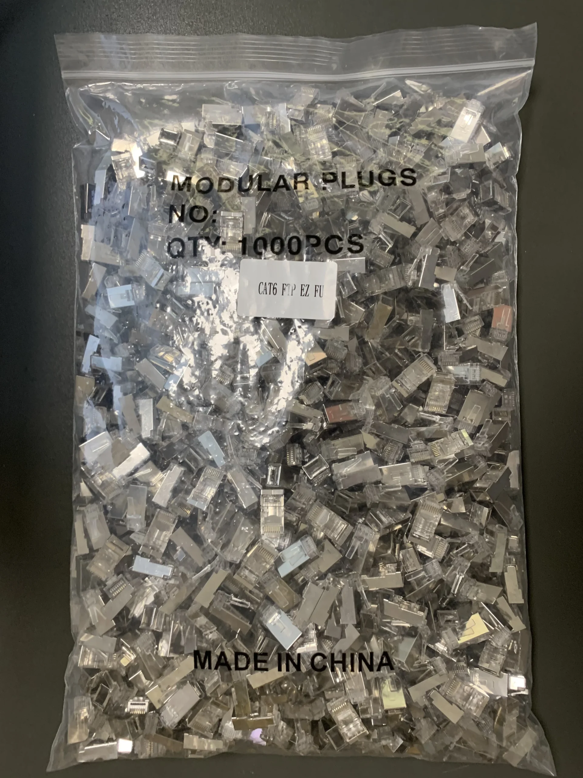 CAT6 FTP FU EZ Pass Thru RJ45 Connector’s MOQ is 1000 pieces.