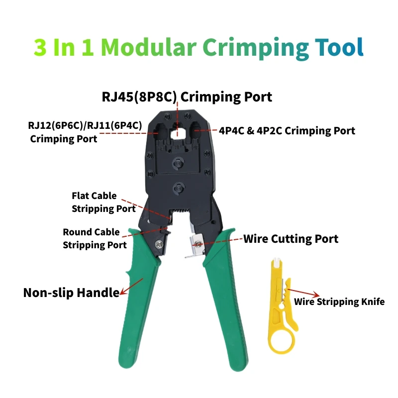 Wires Cutting Stripping Crimping All In One 3 In 1 Modular Crimping Tool For Rj11 Rj12 Rj45 Plugs Use